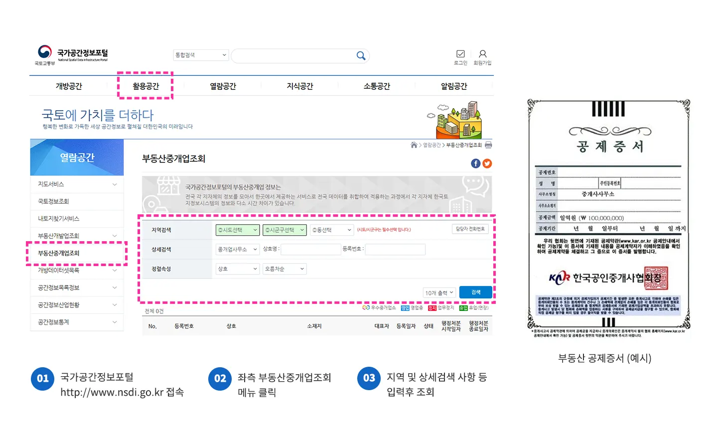 -국가공간정보포털에서 등록된 중개업자인지 확인 가능합니다.