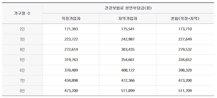 - 보통 직장을 다니시는 경우, 건강보험료 본인부담금표에서 부부+아기까지 3인에 해당되고 부부합산 월 건강보험료 223,722원 이하라면 150% 미만에 해당됩니다. 그 외 지역가입자나, 혼합에 해당되시는 분들은 표를 참고하시면 됩니다. 위 금액은 노인장기요양보험료를 제외한 금액입니다.