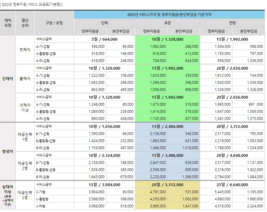 태아 유형, 출산 순위, 서비스기간 선택(표준형·단축형·연장형) 등에 따라 바우처 지원기간 차등화