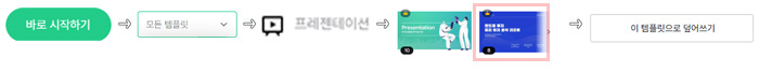 | 바로 시작하기 → 모든 템플릿 → 프레젠테이션 → 원하는 템플릿은 선택 → 이 템플릿으로 덮어쓰기 |