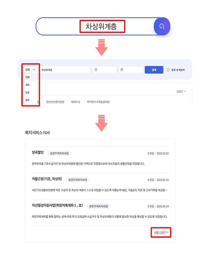 1. 복지로 홈페이지의 검색창에 차상위계층 입력 합니다
